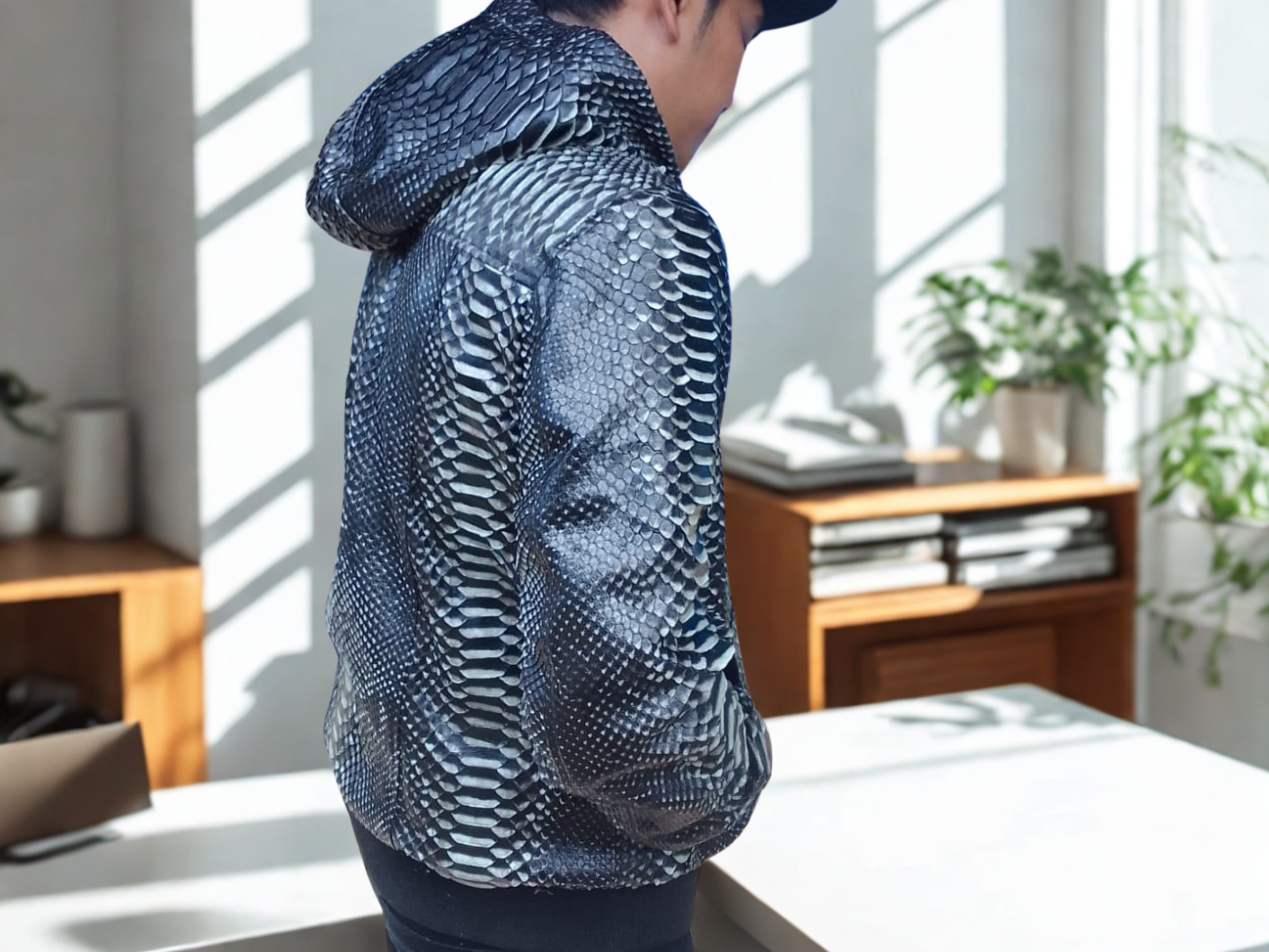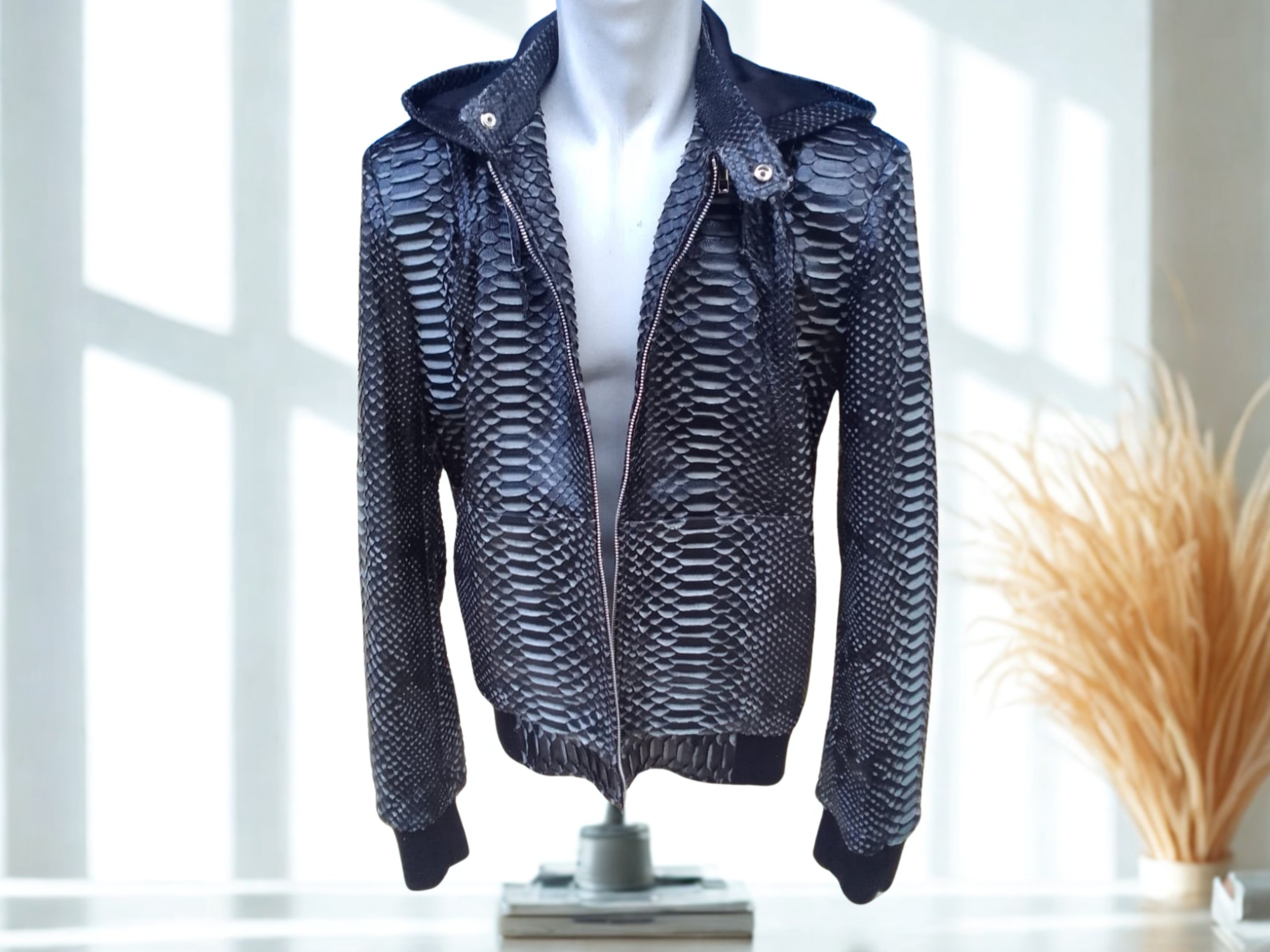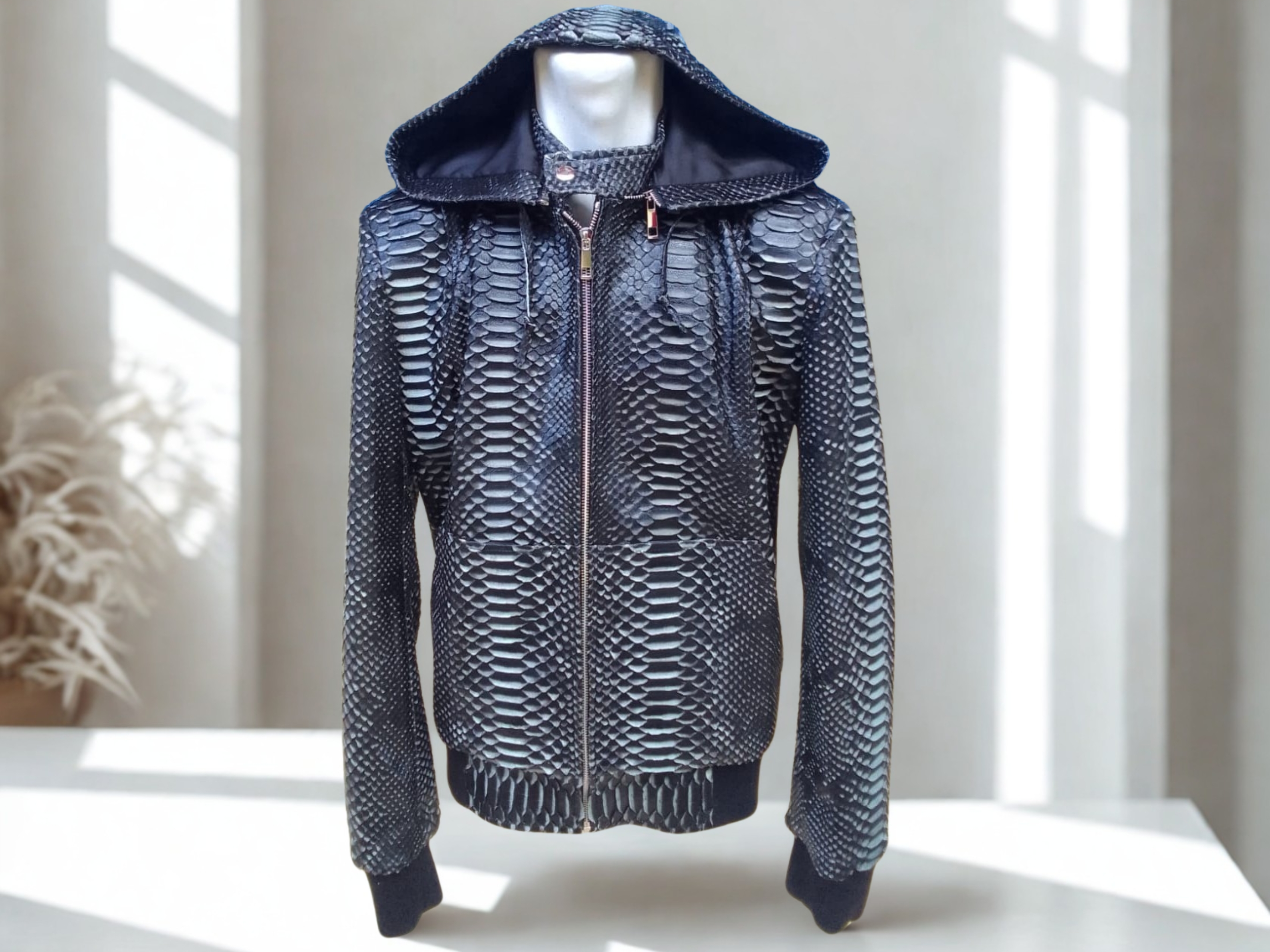 Varsity Snakeskin Leather Jacket with Removable Hoodie