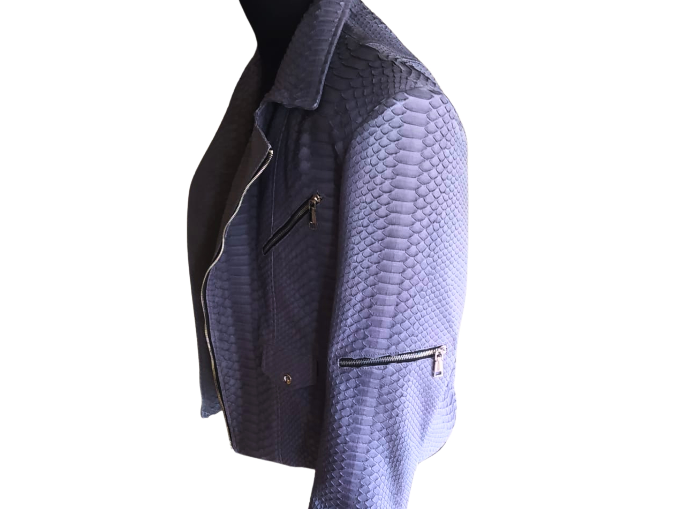 Rock Blue Snakeskin Motorcycle Leather Jacket