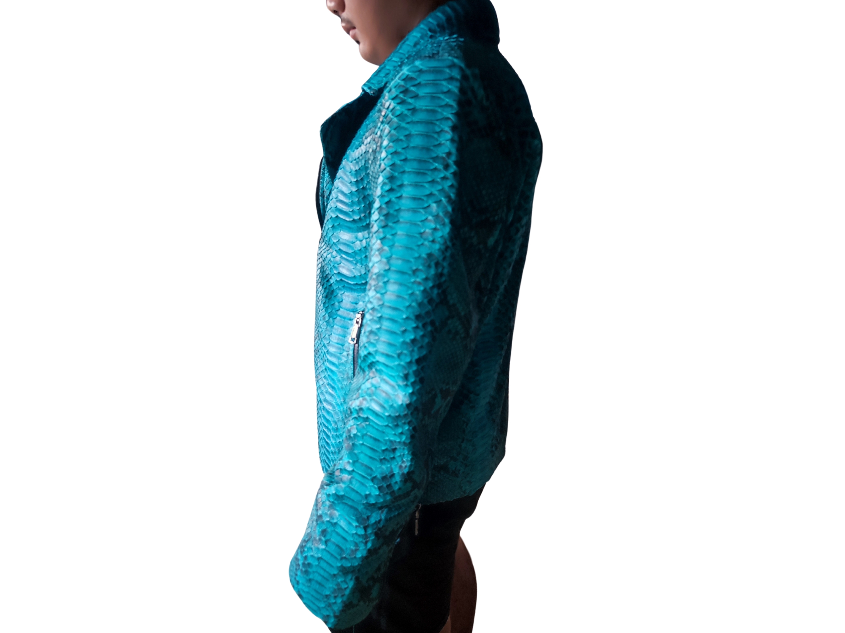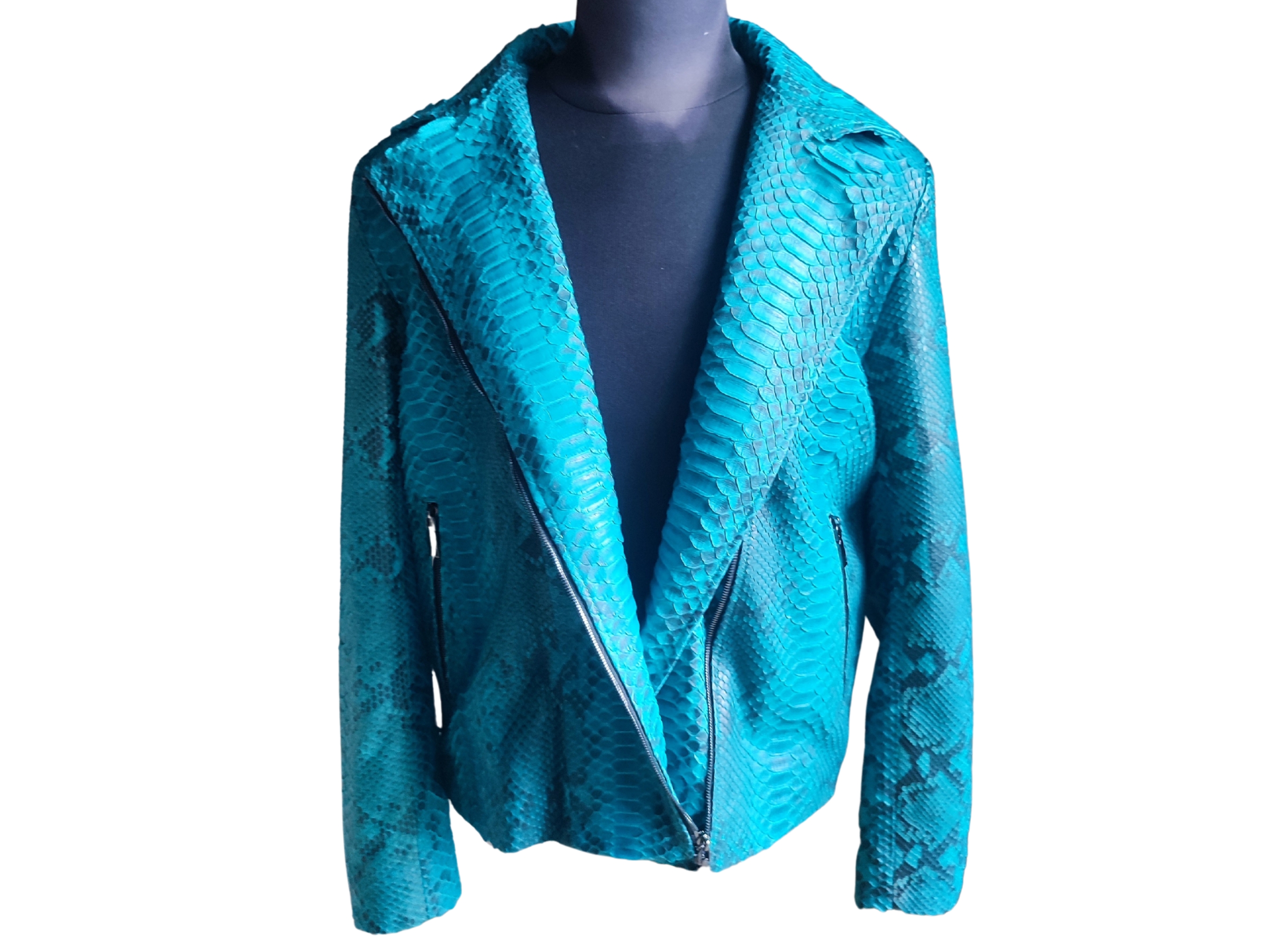Turquoise Snakeskin Motorcycle Leather Jacket
