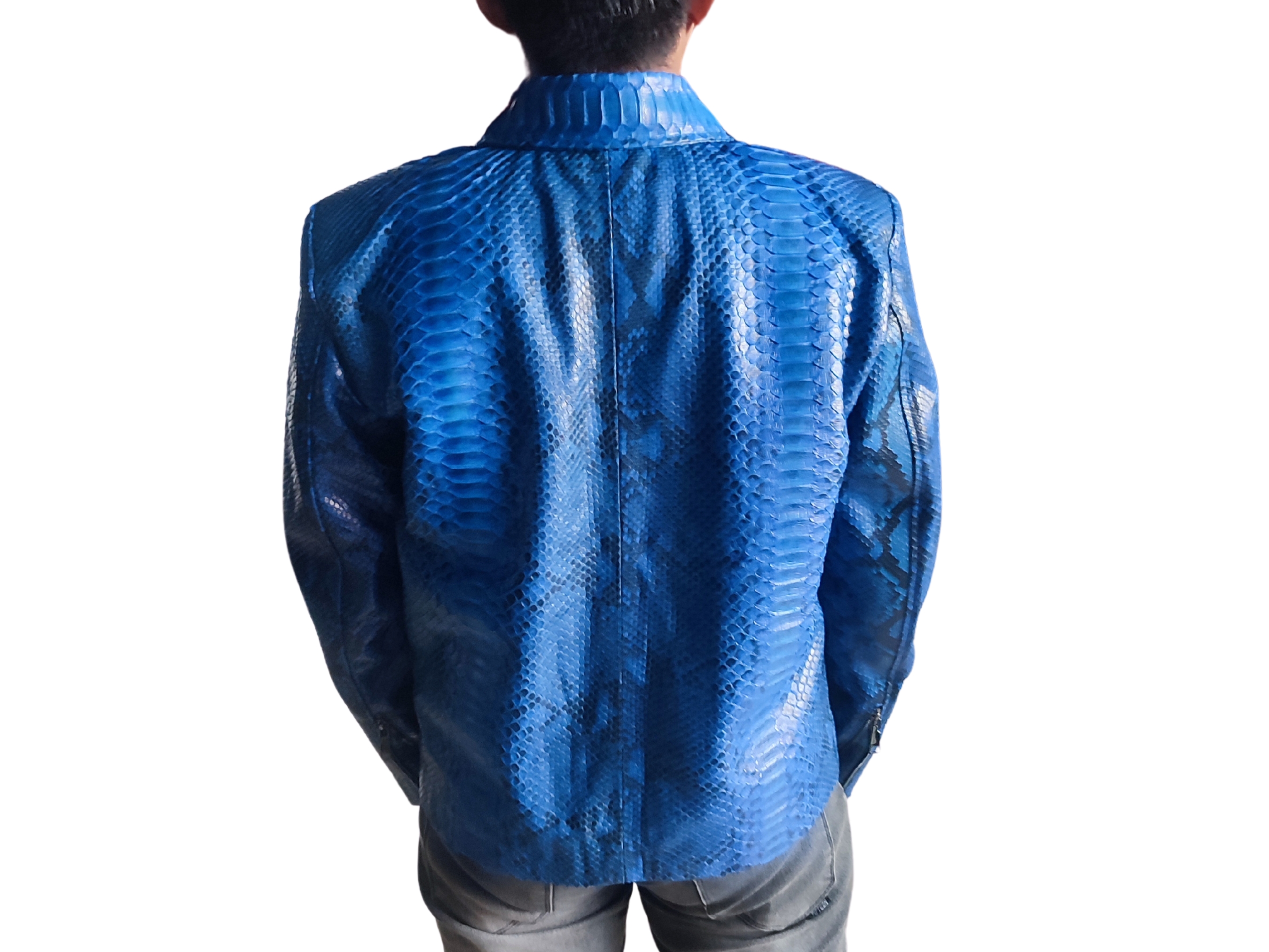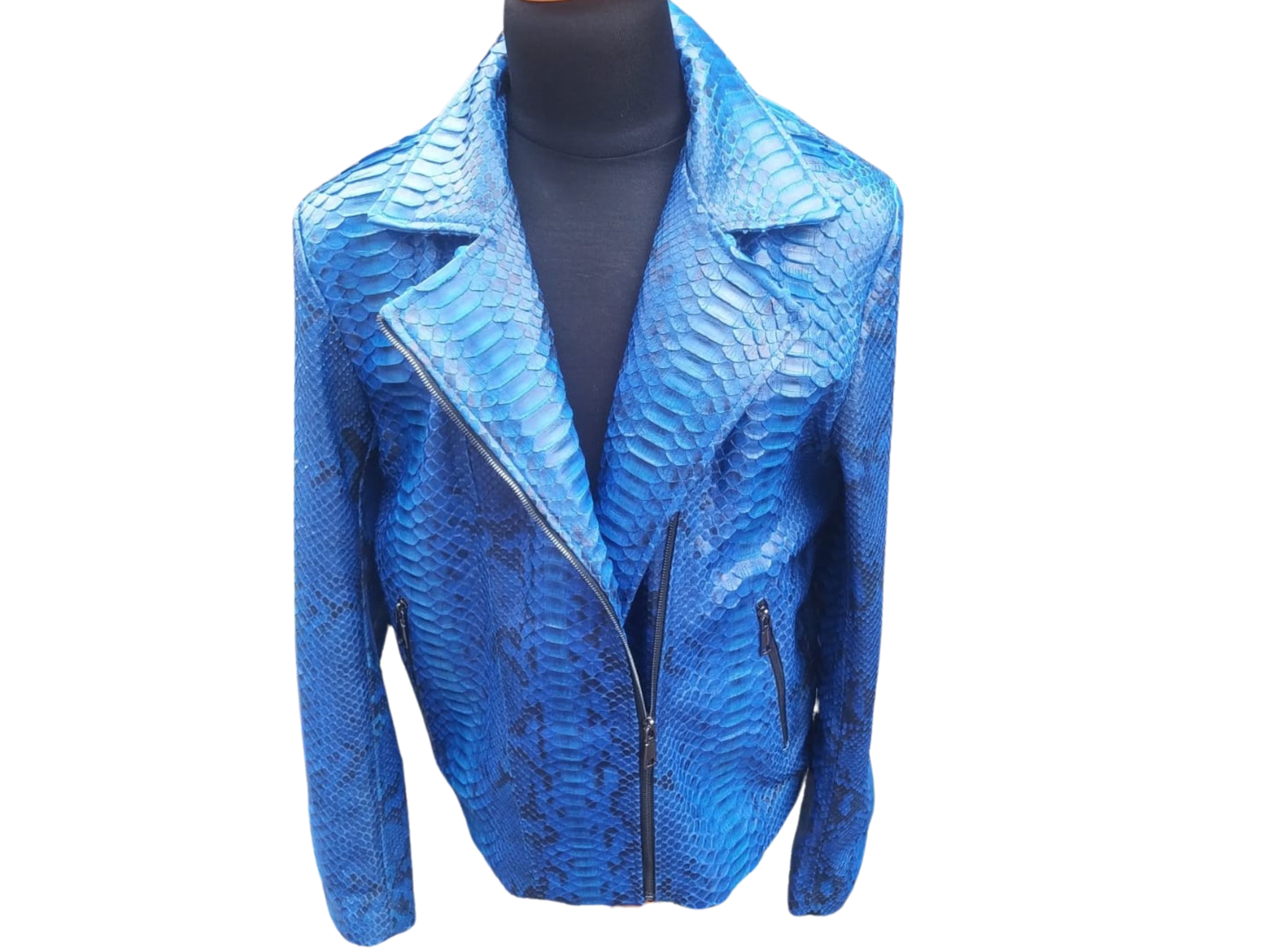 Blue Snakeskin Motorcycle Leather Jacket