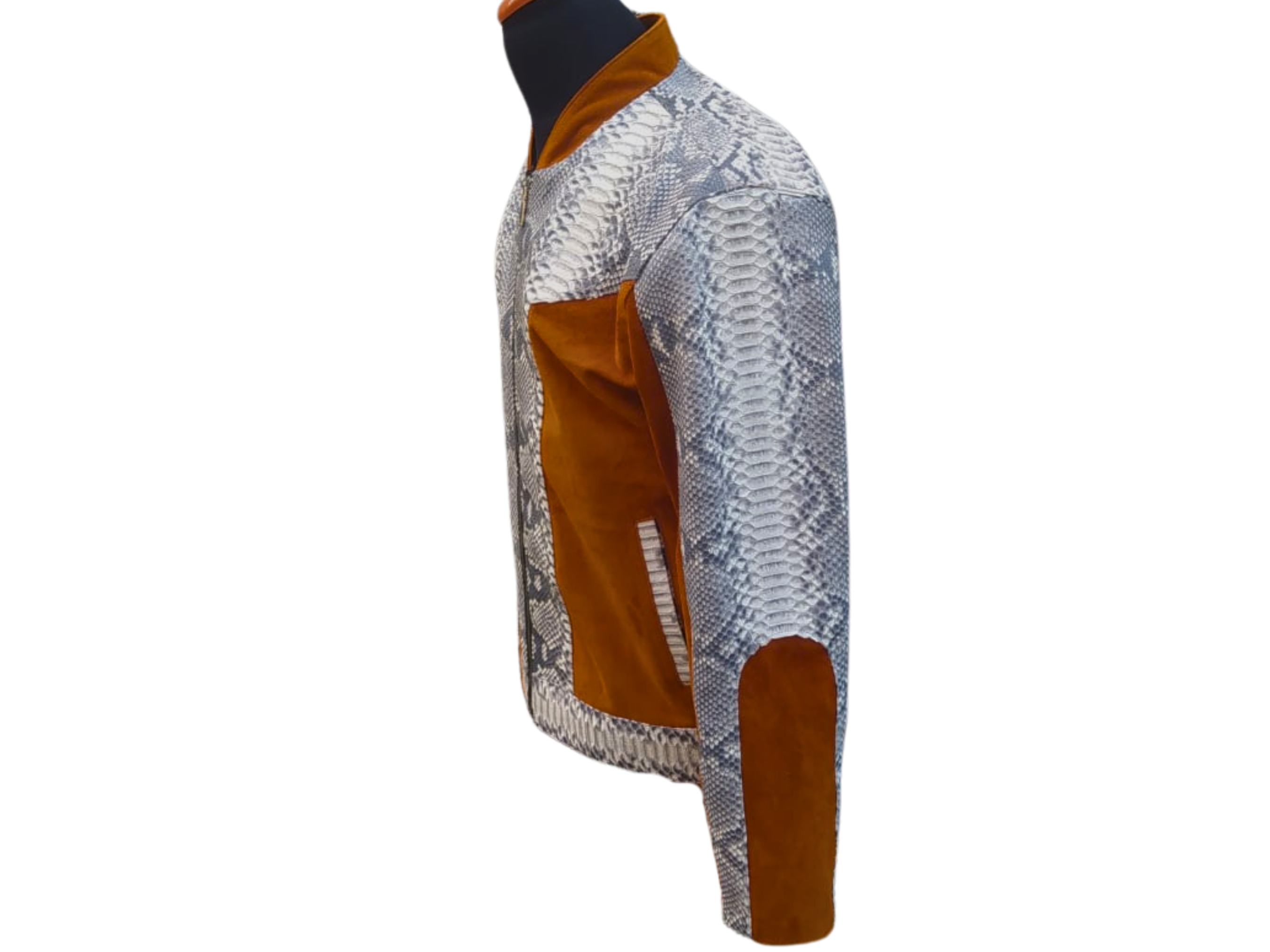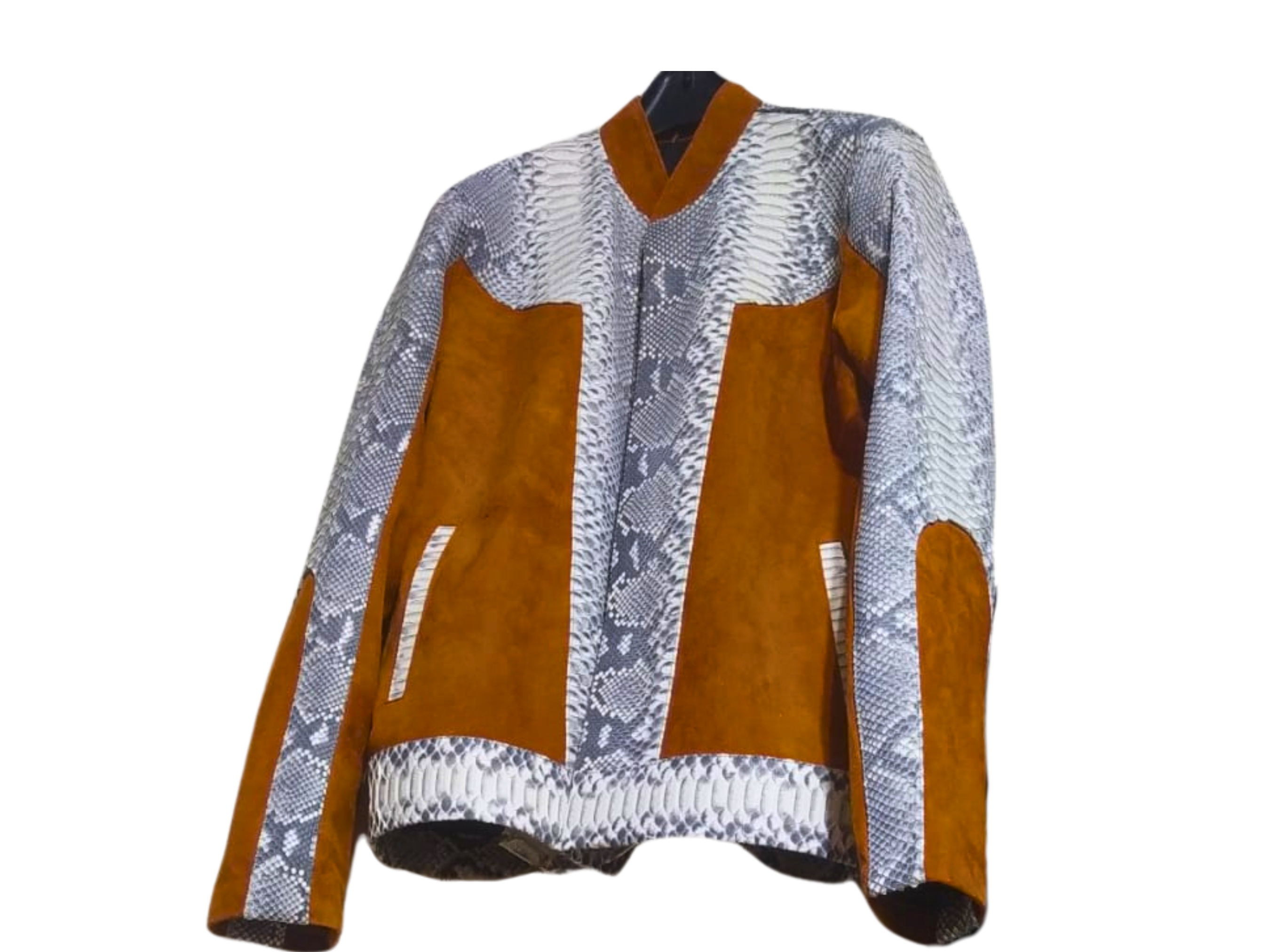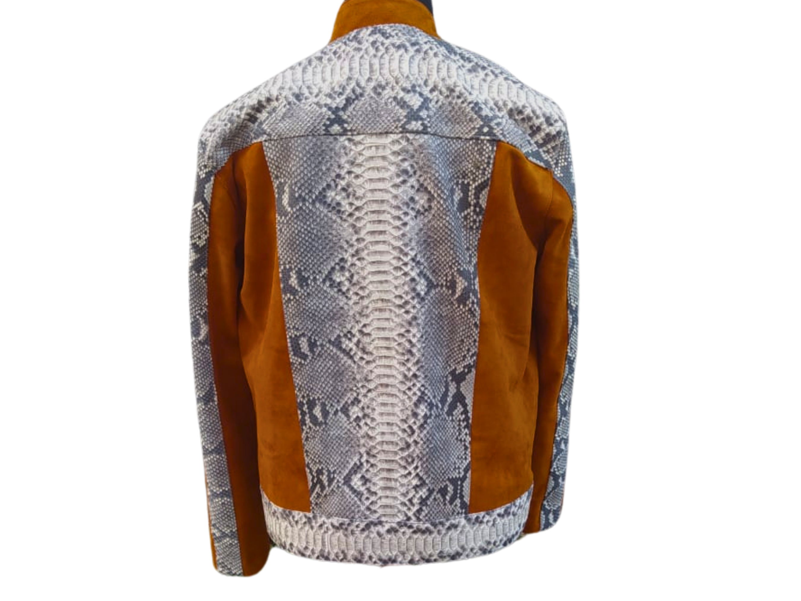 The Cowboy Snakeskin Python Jacket is a stylish and durable jacket perfect for the fashion-forward individual. Made with a unique blend of python and suede leather, this jacket exudes a cowboy style while still providing comfort and durability. Upgrade your wardrobe with this statement piece.