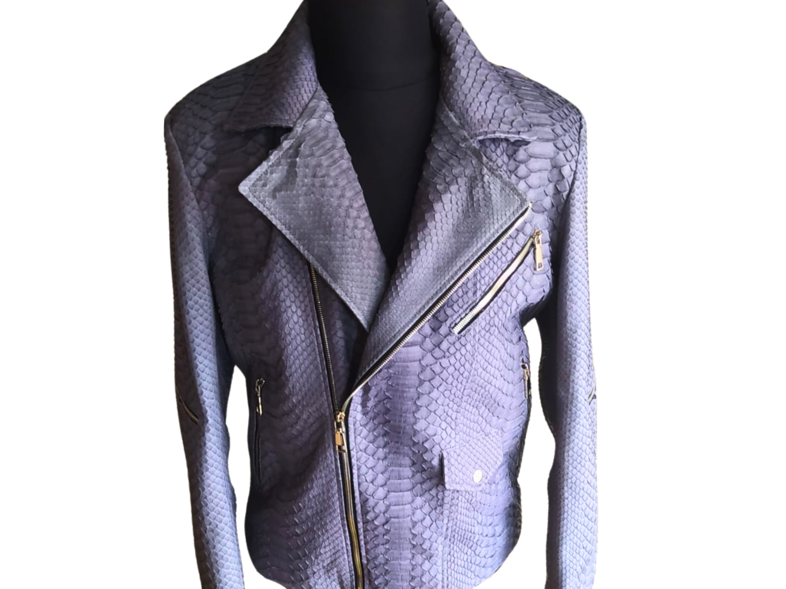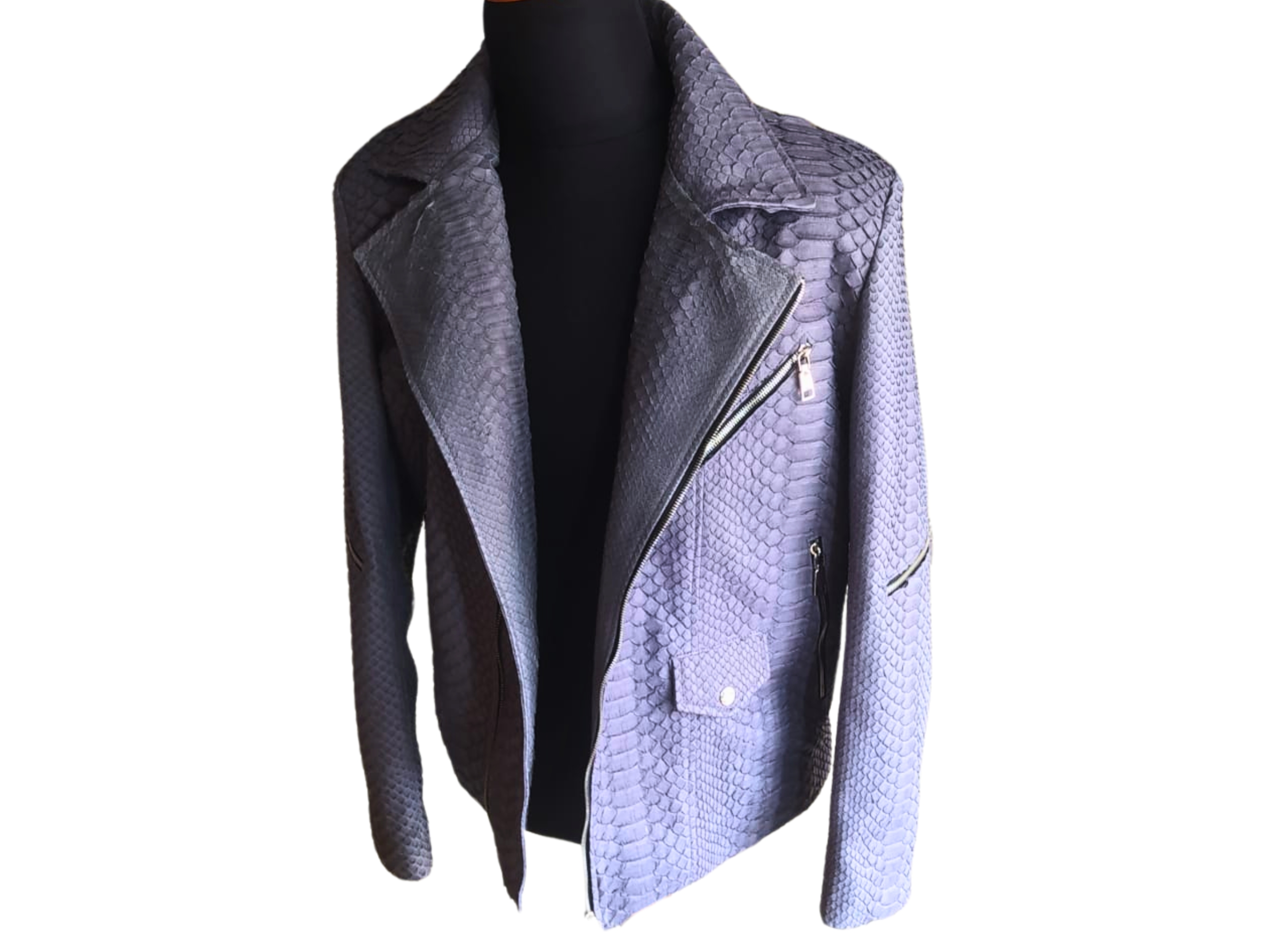 Our Amethyst Smoke Snakeskin Leather Jacket. Boasting a unique snakeskin leather texture, this leather jacket radiate style and sophistication. Made from high-quality snakeskin leather, it offers both comfort and durability. Elevate any outfit with this must-have piece.