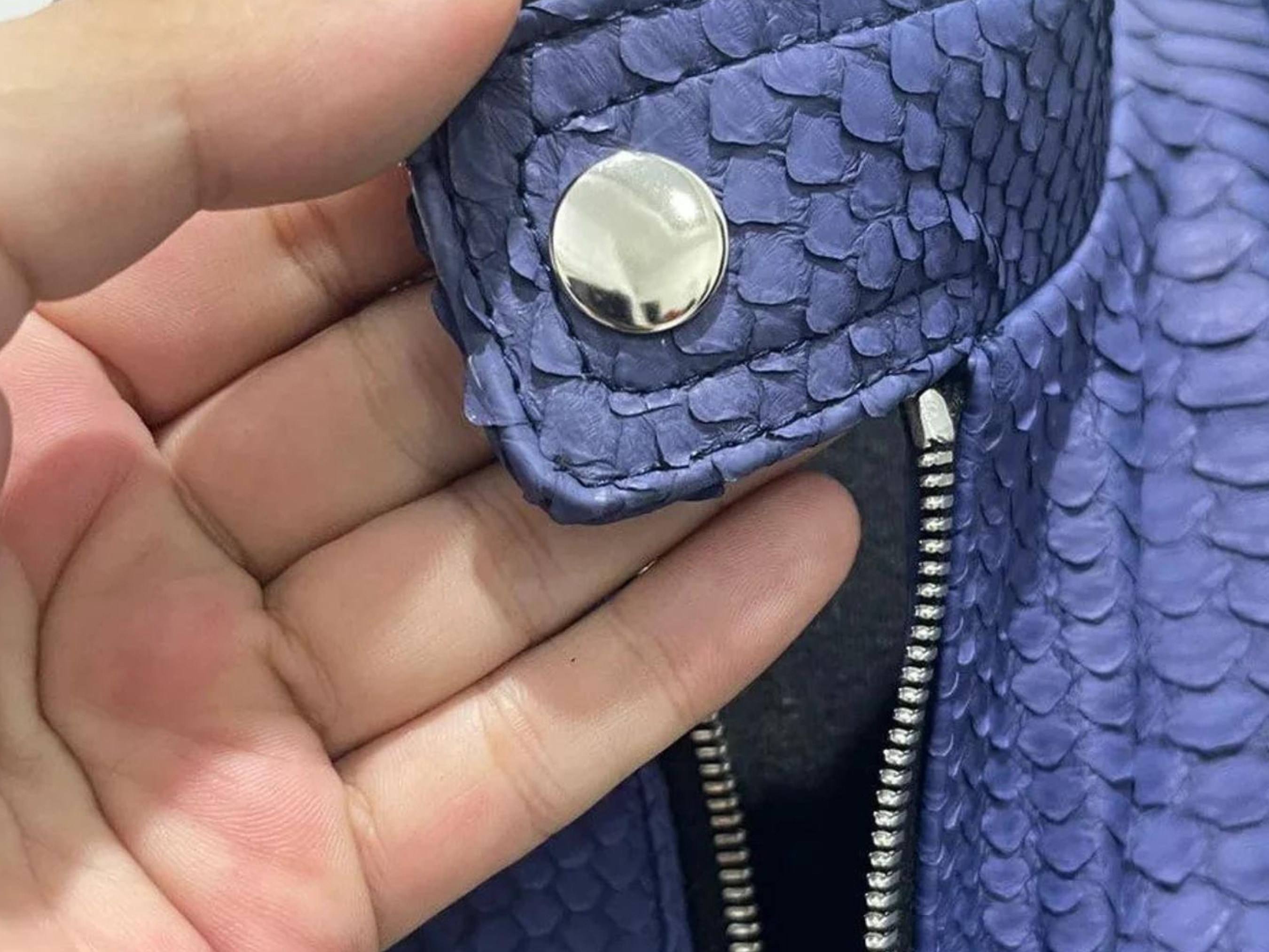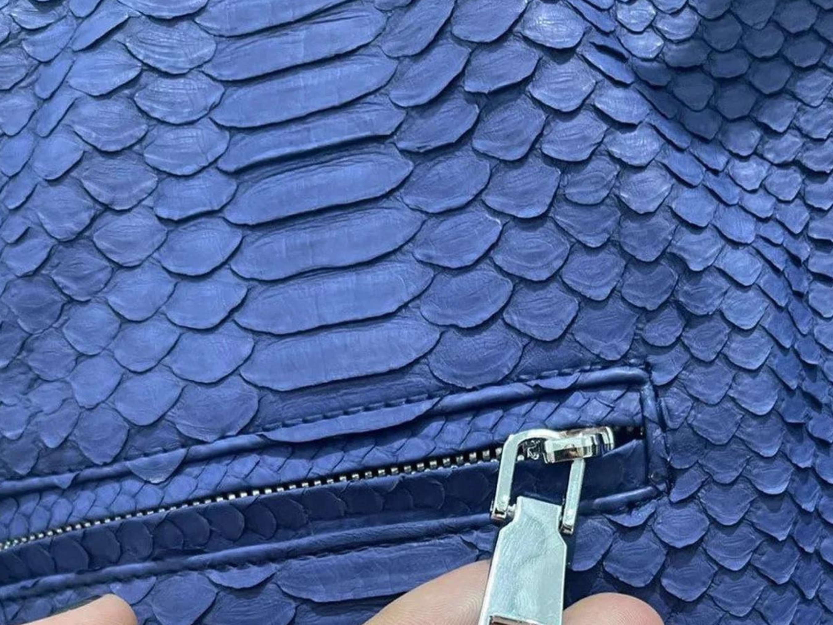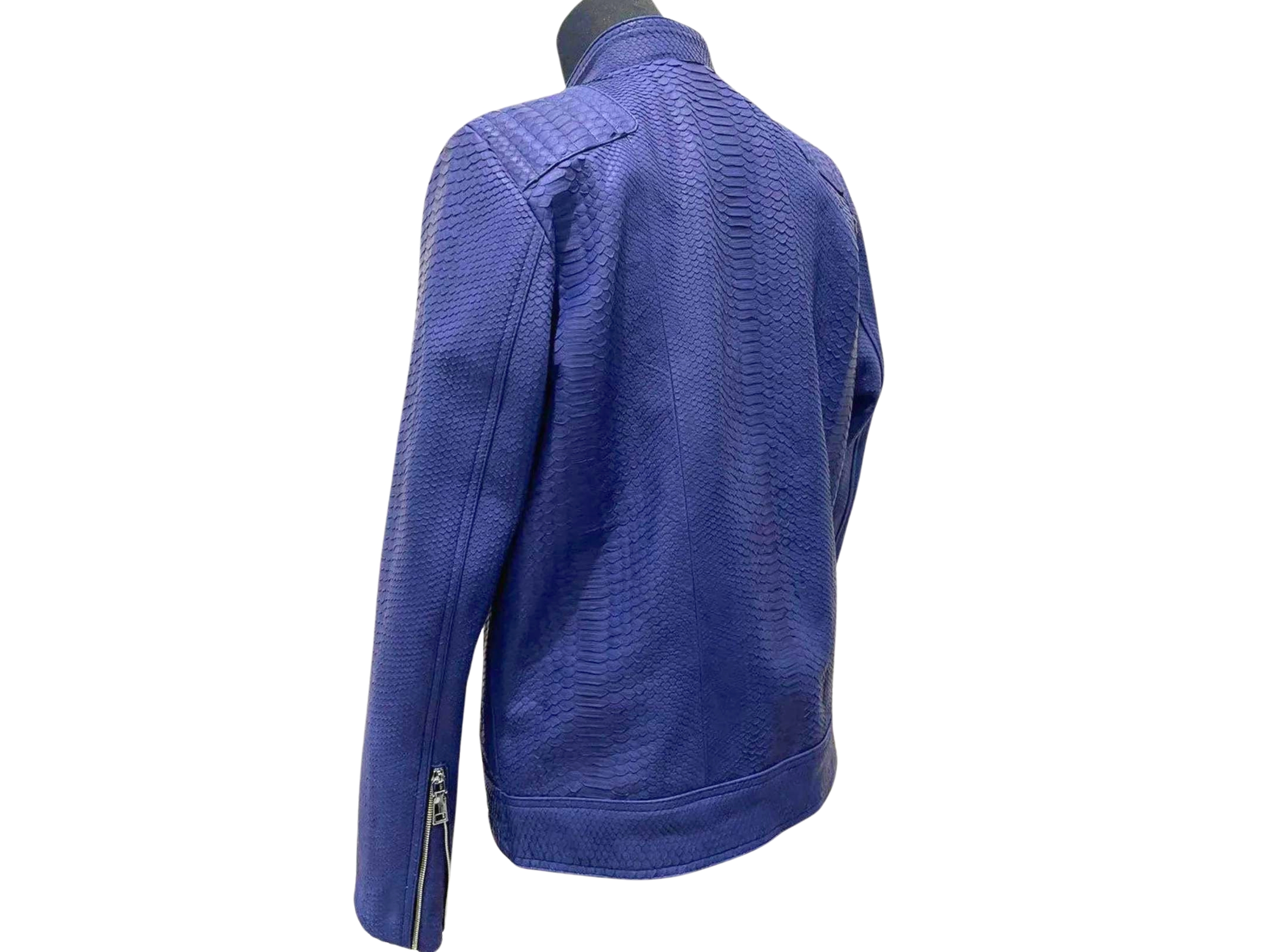 Experience luxury and sophistication with our Dark Blue Snakeskin Leather Jacket. Crafted from real python snake skin, this high-quality leather jacket for men offers durability and a unique texture. Elevate your style and make a statement with this exotic piece.